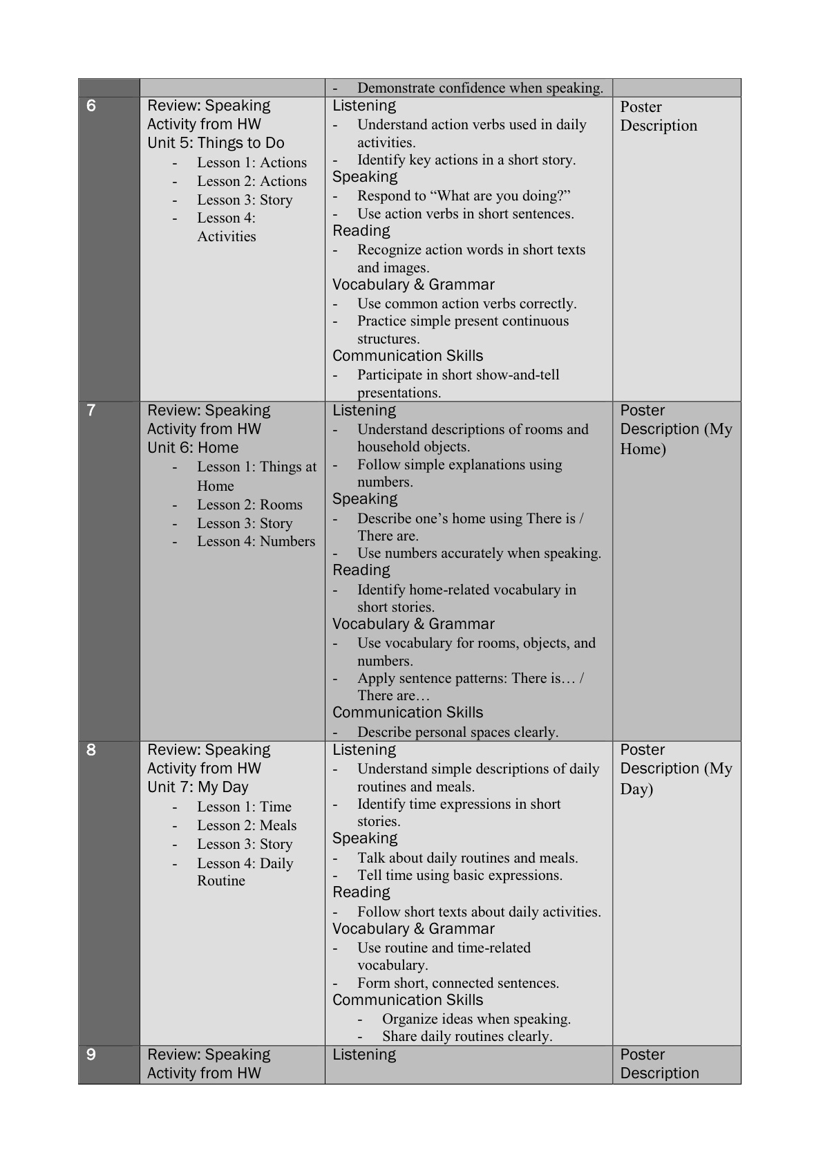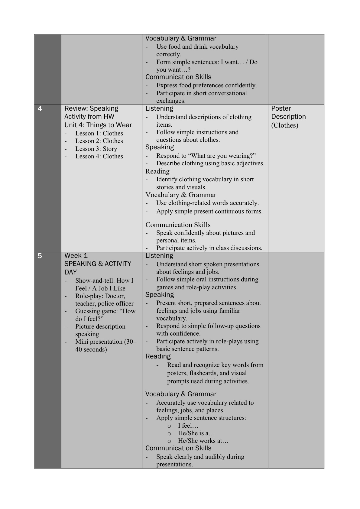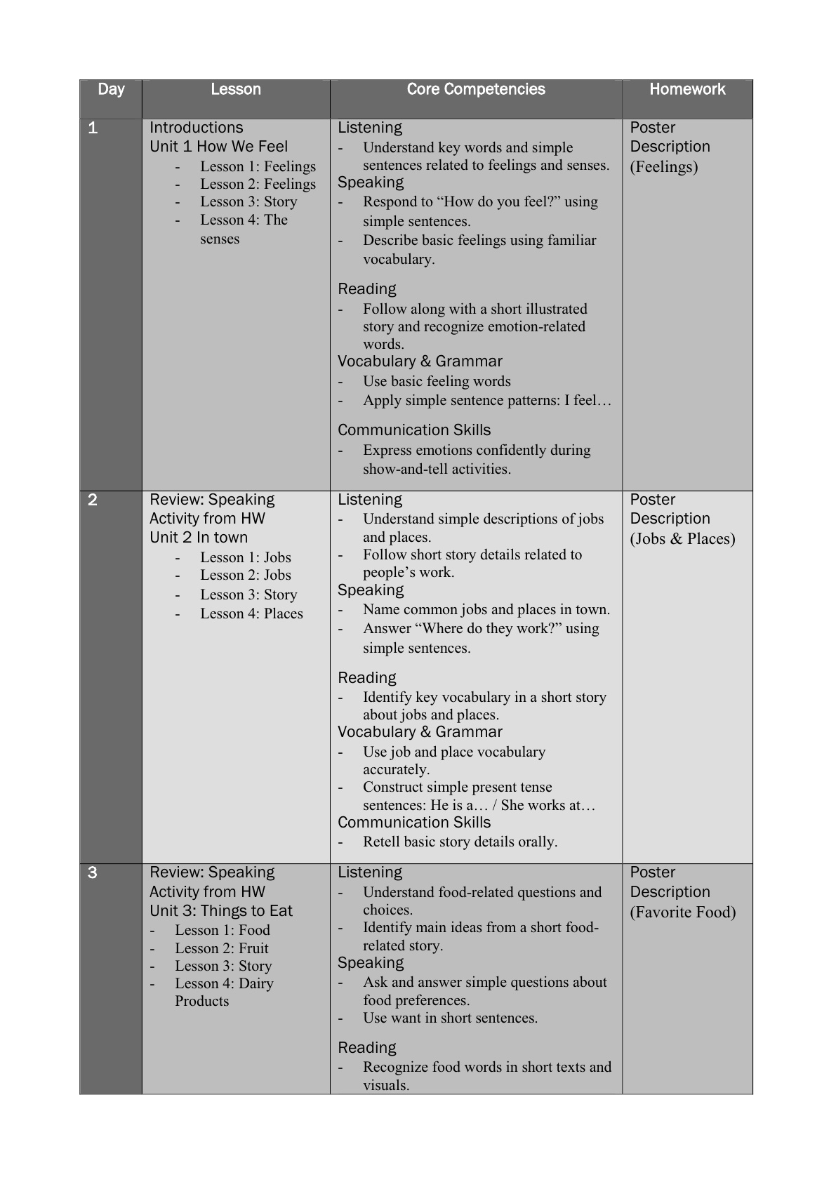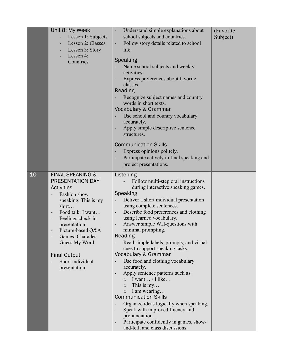 | 학습 기간 월요일 부터 금요일 까지 40분씩 수업 | 학생 평가서 4주 이상 프로그램 진행시 학생 평가서 제공 |